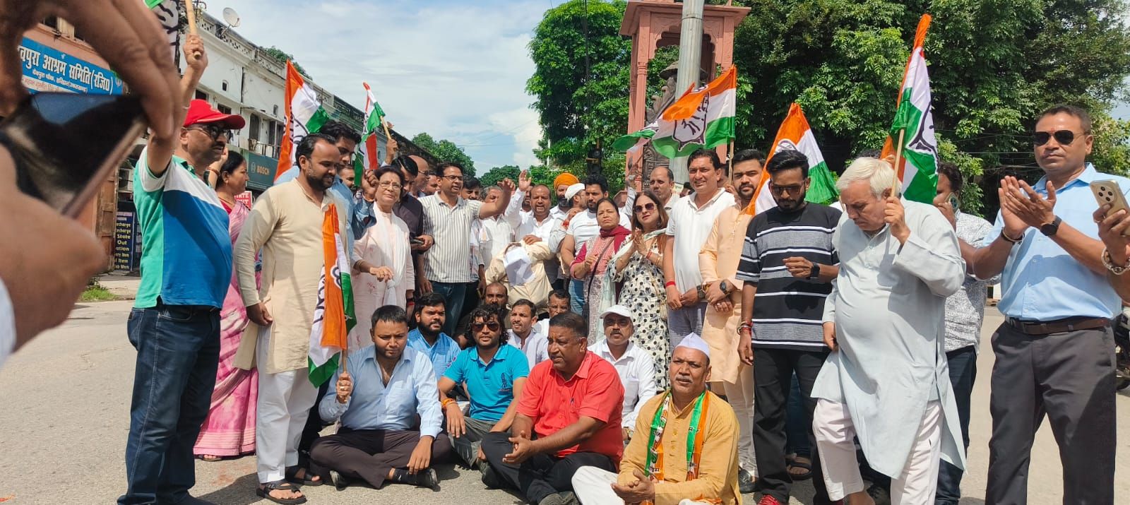 कांग्रेस कार्यकर्ताओं ने शंकर आश्रम तिराहे से चंद्राचार्य चौक तक पैदल मार्च निकालकर सरकार के खिलाफ प्रदर्शन किया।