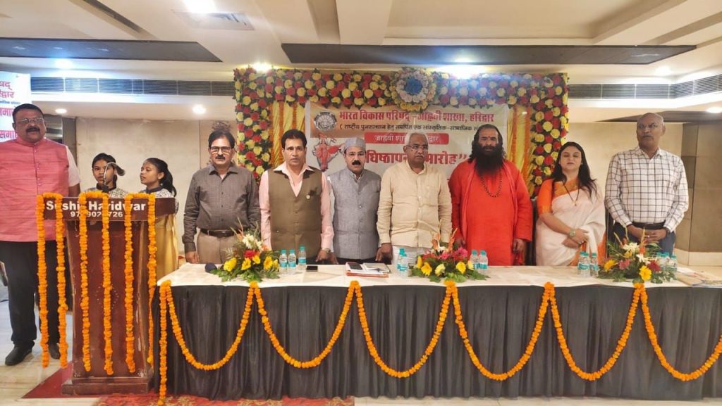 भारत विकास परिषद जाह्नवी शाखा द्वारा उत्तरी हरिद्वार स्थित एक होटल में सांस्कृतिक अधिष्ठापन समारोह एवं विशिष्ट प्रतिभा सम्मान समारोह का भव्य आयोजन किया गया। कार्यक्रम का शुभारंभ अखिल भारतीय अखाड़ा परिषद के अध्यक्ष एवं श्री मनसा देवी मंदिर ट्रस्ट के अध्यक्ष श्री महंत रविंद्र पुरी, नगर विधायक मदन कौशिक और उत्तराखंड राज्य महिला आयोग की उपाध्यक्ष ऐश्वर्या रावत ने संयुक्त रूप से किया।