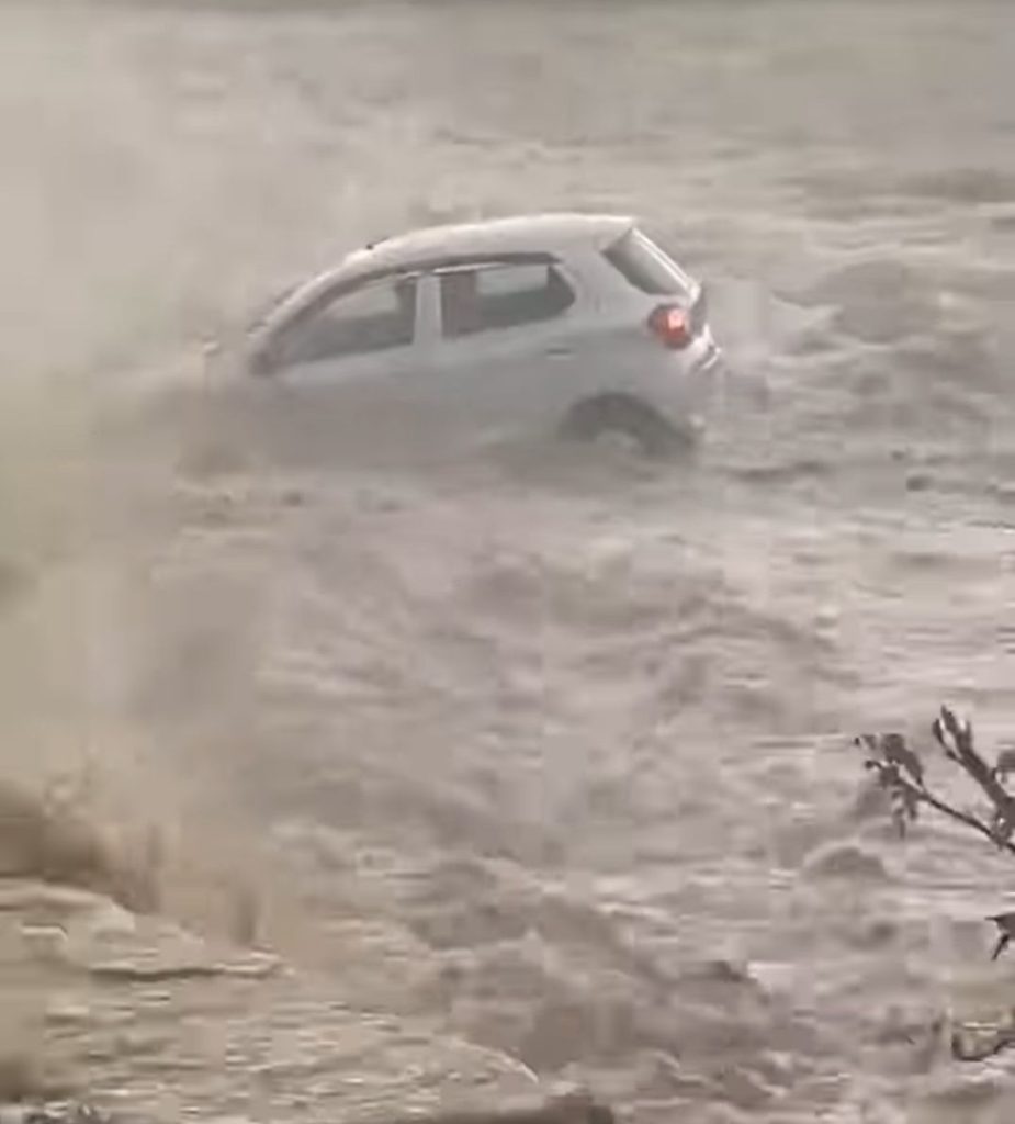 विकास नगर के कटापत्थर क्षेत्र में भारी बारिश के बाद नरो खाले ने रौद्र रूप ले लिया। जलस्तर अचानक इतना बढ़ा कि एक कार चालक लापरवाही में खाले को पार करने की कोशिश में फंस गया। तेज बारिश के चलते कटापत्थर के पास नरो खाले में अचानक पानी का स्तर बहुत बढ़ गया। इस बीच, एक कार चालक ने लापरवाही दिखाते हुए तेज बहाव को नजरअंदाज कर खाले को पार करने की कोशिश की लेकिन यह गलती उसकी जान पर बन आई.कार पानी के तेज बहाव में बहने लगी, लेकिन सौभाग्यवश खाले से कुछ ही दूरी पर कार एक किनारे अटक गई, जिससे बड़ा हादसा टल गया।