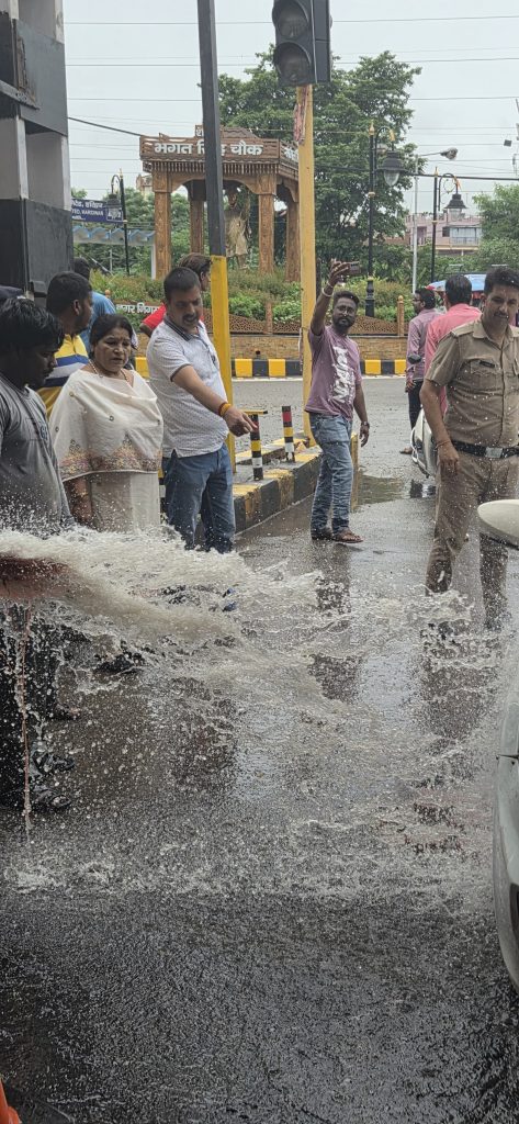 मेयर किरण जैसल ने बरसात में जलभराव से सर्वाधिक प्रभावित होने वाले भगत सिंह और चंद्राचार्य चौक क्षेत्र का आज बुधवार को निरीक्षण किया। इस दौरान चंद्राचार्य चौक व्यापार मंडल के अध्यक्ष मृदुल कौशिक एवं व्यापारियों ने मेयर को अवगत कराया कि क्षेत्र में नालों की ठीक ढंग से सफाई नहीं होने के कारण जलभराव के समय स्थिति अधिक खराब हो जाती है। नालों कूड़ा करकट जमा होने के कारण दुकानों और आसपास की कालोनियों में घरों में भी पानी भर जाता है। मेयर किरण जैसल ने कहा कि जलभराव की जटिल समस्या लंबे समय बनी हुई है। जिसका समाधान करना उनकी पहली प्राथमिकता है। समस्या का समाधान होने के बाद लोगों को असुविधा का सामना नहीं करना पड़ेगा। मेयर ने व्यापारियों को नालों की दोबारा सफाई कराने का आश्वासन देते हुए अधिकारियों को नालों की सफाई की जांच करने और पूरी तरह सफाई कराने के निर्देश भी दिए।