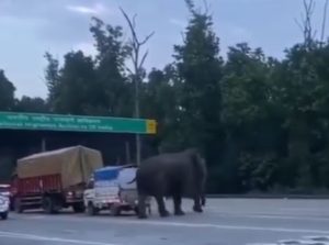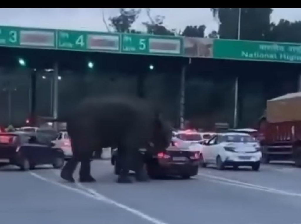 लच्छीवाला टोल प्लाजा पर पहुंचे गजराज ।रास्ते में आई कार तो हो गए आक्रामक।