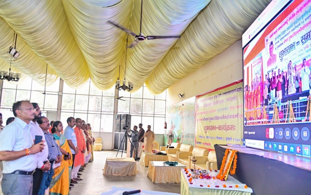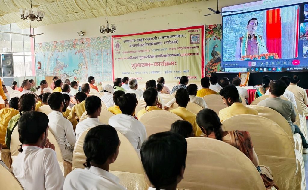 संस्कृत भाषा को आम जन की भाषा बनाने के लिए व्यापक रूप से प्रचारित प्रसारित किया जाएगा – स्वामी यतीश्वरानंद। उत्तराखंड संस्कृत अकादमी उत्तराखंड सरकार एवं केंद्रीय संस्कृत विश्वविद्यालय नई दिल्ली के सयुक्त तत्वधान में संचालित 13 आदर्श संस्कृत ग्रामों का शुभारंभ मुख्यमंत्री पुष्कर सिंह धामी ने राजकीय प्राथमिक विद्यालय, आदर्श संस्कृत ग्राम भोगपुर डोईवाला से वर्चुअल माध्यम से किया गया।