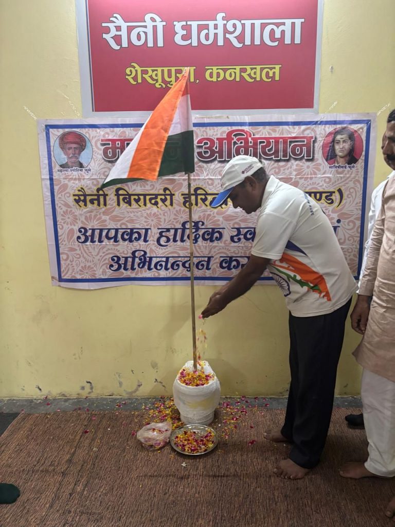 इस अवसर पर सैनी धर्मशाला शेखूपुरा कनखल के प्रबंधक रमेश चद सैनी द्वारा सैनी धर्मशाला के विषय में विस्तार से सभी उपस्थित जनों को अवगत कराया गया । सभी उपस्थिति सदस्यों के द्वारा आजादी के विषय में विस्तार से बताया गया ।गायत्री मंत्र के साथ मीटिंग का शुभारंभ हुआ देर शाम तक चले कार्यक्रम का सामूहिक जलपान के साथ समापन हुआ।