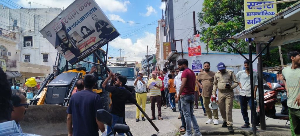 जिलाधिकारी मयूर दीक्षित के निर्देशों के क्रम में नगर निगम द्वारा चलाया गया अतिक्रमण हटाओं अभियान।वरिष्ठ नगर स्वास्थ्य अधिकारी/अतिक्रमण प्रभारी नगर निगम हरिद्वार डा. गम्भीर सिंह तालियान ने अवगत कराया है कि जिलाधिकारी मयूर दीक्षित के निर्देशों के क्रम में एवं नगर आयुक्त नगर निगम हरिद्वार नन्दन कुमार के निर्देशन में आज नगर निगम हरिद्वार द्वारा उनके नेतृत्व में टीम गठित कर अतिक्रमण हटाओं अभियान चलाया गया। जिसमें नगर निगम की टीम द्वारा चन्द्राचार्य चौक से प्रेमनगर आश्रम के पुल तक अतिक्रमण हटाओं अभियान चलाया गया, इस दौरान स्थायी अतिक्रमण को धवस्त किया गया साथ ही होर्डिंग्स को हटाया गया एवं अतिक्रमणकारियों का सामान जब्त किया गया तथा दोबारा अतिक्रमण न किये जाने हेतु सभी को कड़ी चेतावनी भी दी गयी। उन्होंने अवगत कराया है कि अतिक्रमण के खिलाफ नगर निगम द्वारा निरन्तर अभियान जारी रहेगा।