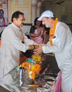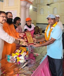 खेलों को बढ़ावा के लिए महामंडलेश्वर स्वामी रूपेंद्र प्रकाश महाराज और डॉ विशाल गर्ग को स्मृति चिन्ह और अंग वस्त्र प्रदान कर लाइफ अचीवमेंट पुरस्कार से किया गया सम्मानित