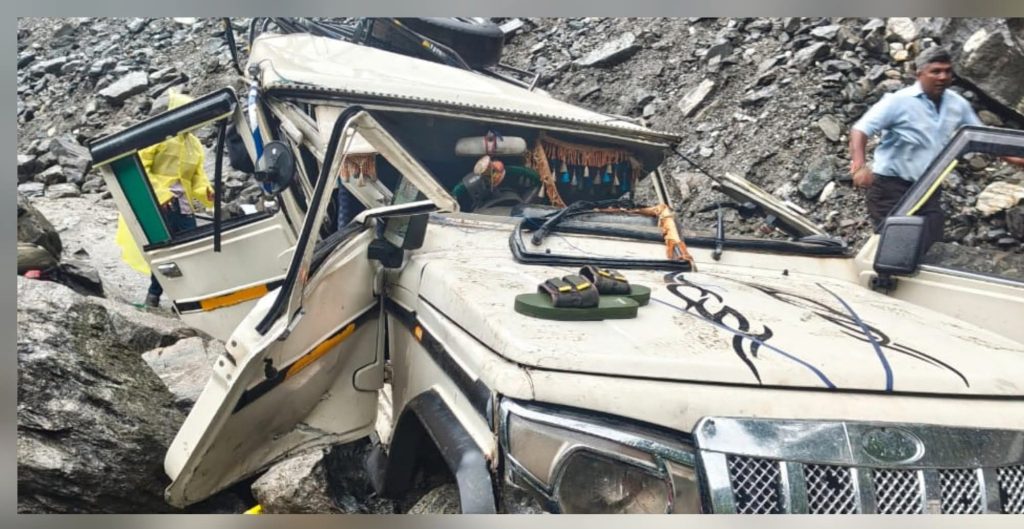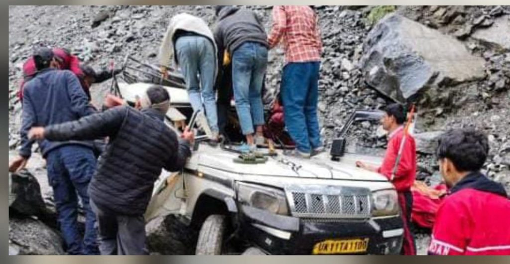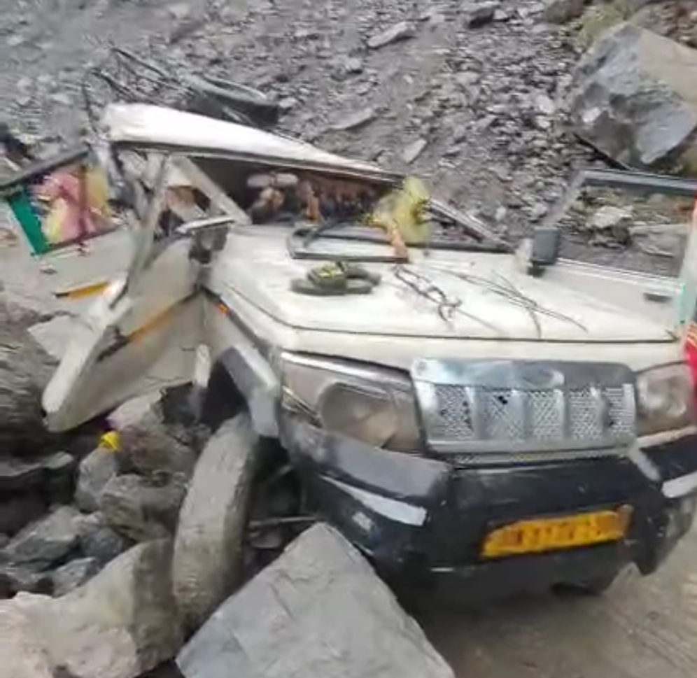 रुद्रप्रयाग जनपद में केदारनाथ मार्ग पर मुनकटिया स्लाइडिंग जोन क्षेत्रान्तर्गत हुई दुःखद घटना,ऊपर पहाड़ी से पत्थर गिरने से मैक्स बोलेरो वाहन आया चपेट में,दो लोगों की मौत।