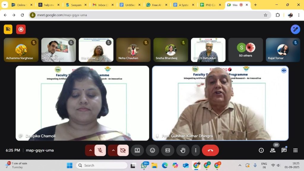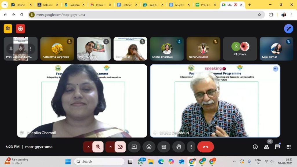 श्री देव सुमन उत्तराखंड विश्वविद्यालय (SDSUV), उत्तराखंड ने स्पीकिंग क्यूब ऑनलाइन मानसिक स्वास्थ्य परामर्श फाउंडेशन और SPECS एनजीओ के सहयोग से “शिक्षण और अनुसंधान पद्धति में कृत्रिम बुद्धिमत्ता (AI) के समावेश” विषय पर केंद्रित 12 दिवसीय (24 घंटे) ऑनलाइन फैकल्टी डेवलपमेंट प्रोग्राम (FDP) का आयोजन सफलतापूर्वक किया।