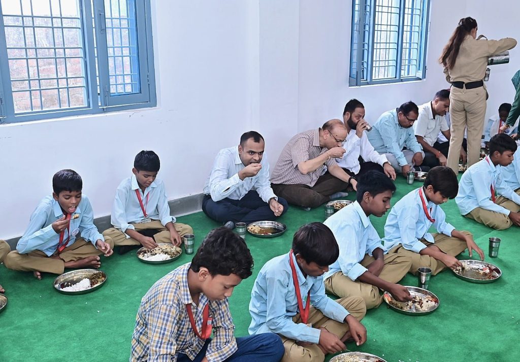 जिलाधिकारी छात्र छात्राओं के संग बैठकर मध्याह्न भोजन मिड डे मिल की गुणवत्ता को परखा।