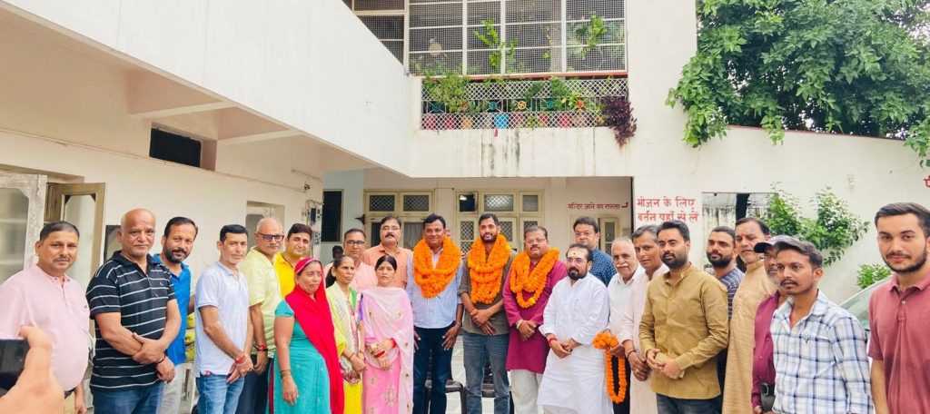 भारतीय जनता पार्टी जिला हरिद्वार की नवगठित कार्यकारिणी के तीन पदाधिकारी का उत्तरी हरिद्वार में भाजपा कार्यकर्ताओं द्वारा स्वागत किया गया युवा मोर्चा के प्रदेश मंत्री दीपांशु विद्यार्थी द्वारा संगरूर भवन खड़खड़ी में आयोजित कार्यक्रम में नवगठित कार्यकारिणी में उपाध्यक्ष तरुण नैय्यर, महामंत्री हीरा सिंह बिष्ट और मंत्री विनीत जौली का कार्यकर्ताओं द्वारा भव्य स्वागत किया गया। कार्यक्रम की अध्यक्षता पूर्व मंडल अध्यक्ष और भाजपा के वरिष्ठ नेता वीरेंद्र तिवारी ने की। कार्यक्रम में वरिष्ठ भाजपा नेता उज्जवल पंडित ने तीनों पदाधिकारी की नियुक्ति पर हर्ष व्यक्त करते हुए जिला अध्यक्ष आशुतोष शर्मा को सुंदर चयन के लिए बधाई दी। क्षेत्र के पार्षदों अनिल वशिष्ठ और सूर्यकांत शर्मा ने अपने संबोधन में तीनों पदाधिकारी को जमीन से जुड़ा हुआ नेता बताते हुए आशा व्यक्ति की इनकी नियुक्ति से भाजपा और मजबूत होगी। नवनयुक्त जिला उपाध्यक्ष तरुण नैय्यर ने स्वागत समारोह करने के लिए आयोजकों का धन्यवाद किया और उन्हें यह दायित्व दिए जाने के लिए जिलाध्यक्ष आशुतोष शर्मा सहित हाइकमान का आभार व्यक्त किया।उन्होंने यशस्वी प्रधानमंत्री नरेंद्र मोदी के जन्मदिन 17 सितम्बर से आरंभ होने वाले सेवा पखवाड़ा को सफल बनाने के लिए सभी कार्यकर्ताओ का आव्हान किया। जिला महामंत्री हीरा सिंह बिष्ट ने कहा कि सरकार की नीतियों को आमजन तक पहुंचाने का दायित्व कार्यकर्ताओं का होता है। जिला मंत्री विनीत जौली में उन्हें यह दायित्व दिए जाने पर हाई कमान का आभार व्यक्त किया। दीपांशु विद्यार्थी ने आए सभी पदाधिकारियों और कार्यकर्ताओं का स्वागत और धन्यवाद किया।इस अवसर पर भाजपा के वरिष्ठ नेता विशाल मूर्ति भट्ट ,विकल राठी, ललित सचदेवा, पुष्पा संतोषी , राजीव भट्ट, उमेश तिवारी, प्रमोद पाल, मोनिका धीमान, देवेन्द्र गिरी, संदीप गोस्वामी, गौरव सचदेवा शिवम् वर्मा,अंकुश भाटिया,आदित्य झा,आशु कंडवाल,प्रमोद पाल,भुवन त्रिपाठी,आकाश तोमर,शिवम ठाकुर, आशीष गिरी गौरव गिरी और अभिषेक शर्मा, मुकुल जैन आदि सहित बड़ी संख्या में भाजपा कार्यकर्ता उपस्थित थे।