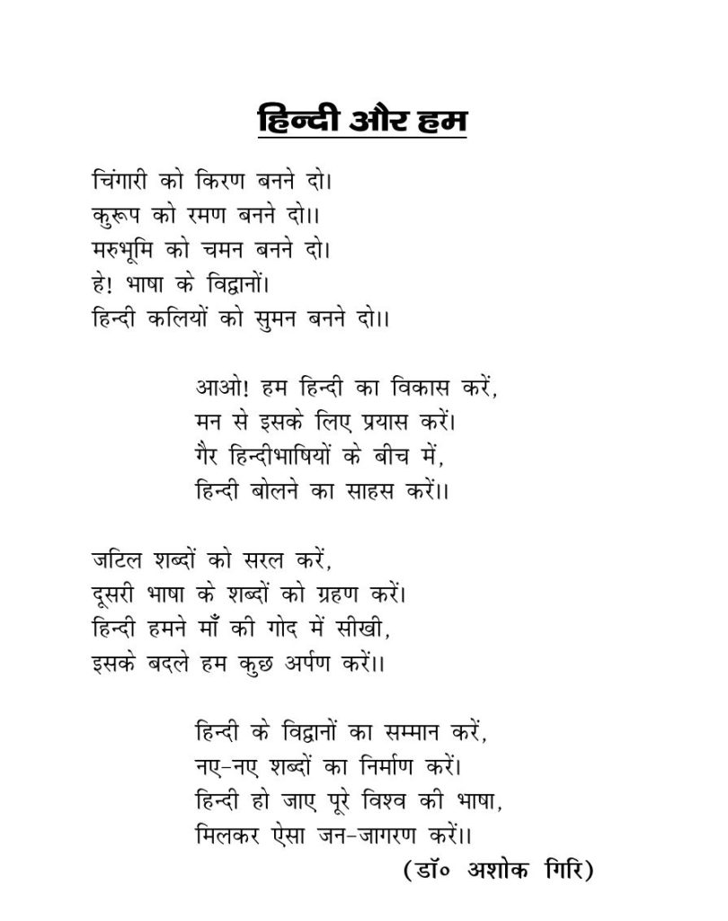 “आओ ! हम हिन्दी का विकास करें, मन से इसके लिए प्रयास करें। गैर हिन्दी भाषियों के बीच में, हिन्दी बोलने का साहस करें “डॉ अशोक गिरी की रचना हिंदी दिवस के अवसर पर। शिक्षा हरिद्वार September 14, 2025September 14, 2025Subhash kapilLeave a Comment on “आओ ! हम हिन्दी का विकास करें, मन से इसके लिए प्रयास करें। गैर हिन्दी भाषियों के बीच में, हिन्दी बोलने का साहस करें “डॉ अशोक गिरी की रचना हिंदी दिवस के अवसर पर।