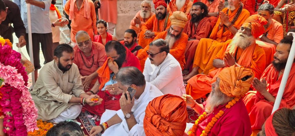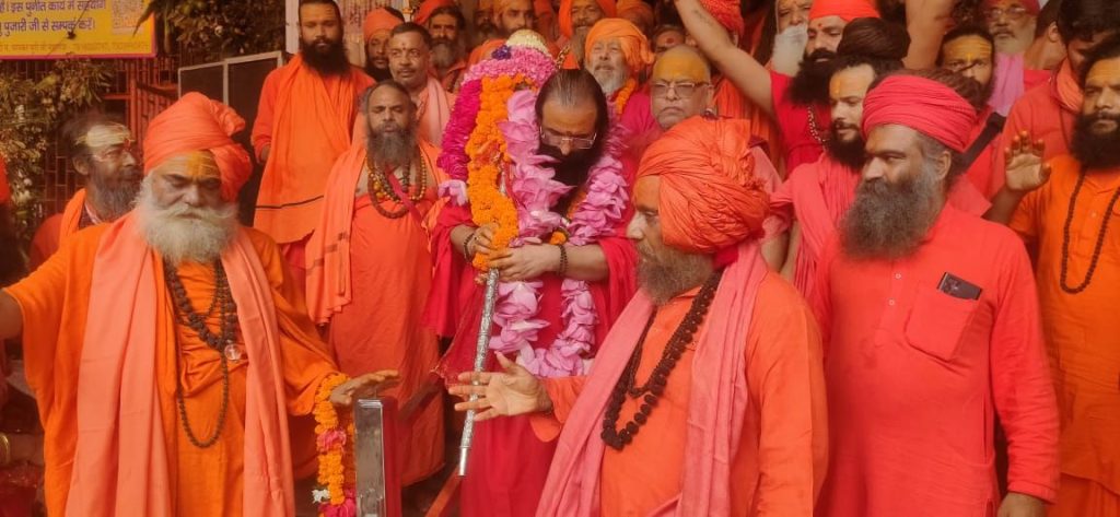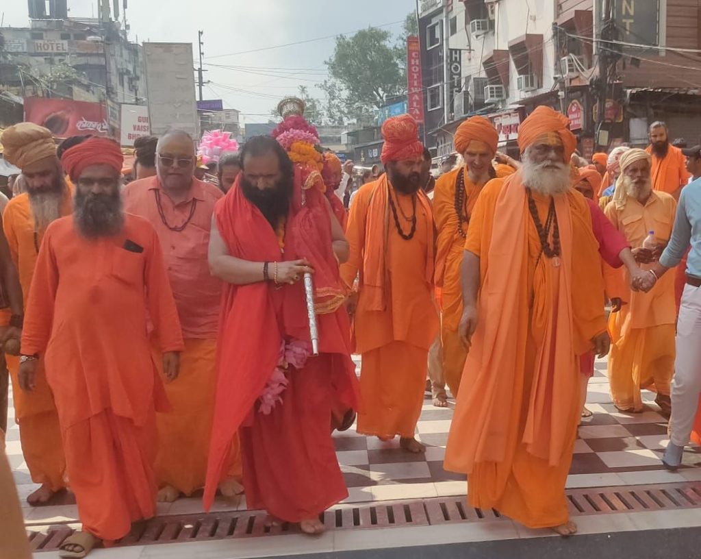 आज सवेरे अखिल भारतीय अखाड़ा परिषद के राष्ट्रीय अध्यक्ष तथा मनसा देवी ट्रस्ट के राष्ट्रीय अध्यक्ष श्री महंत रवींद्र पुरी महाराज तथा जूनाअखाड़े के अंतरराष्ट्रीय महामंत्री हरि गिरि महाराज, अंतरराष्ट्रीय अध्यक्ष श्री महंत मोहन भारती ,वरिष्ठ उपाध्यक्ष श्री महंत केदारपुरी अंतर्राष्ट्रीय सचिव श्री महंत ओम भारती ,महामंत्री श्री महंत महेश पुरी, श्री महंत शैलेंद्र गिरी, श्री महंत महाकाल गिरी पवित्र छड़ी के साथ नगर में भ्रमण करते हुए माया देवी मंदिर से हर की पौड़ी पहुंचे। नागा संन्यासियों के हर-हर महादेव के जय घोष के बीच नागरिकों तथा व्यापारियों व श्रद्धालु भक्तों ने जगह-जगह पुष्प वर्षा कर स्वागत किया।