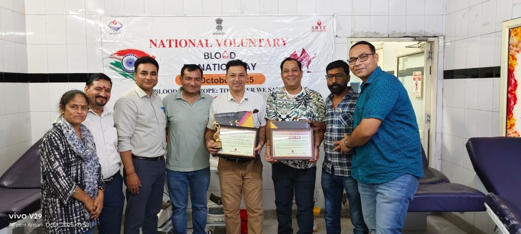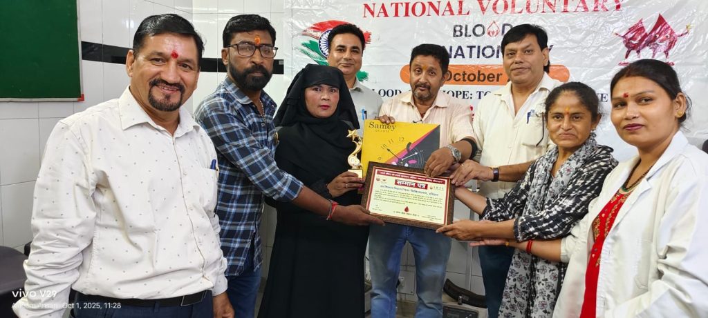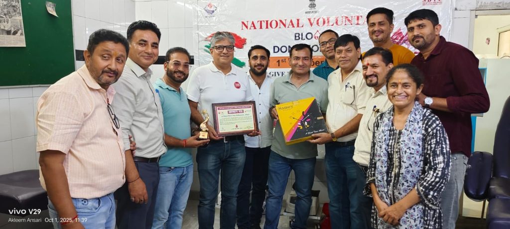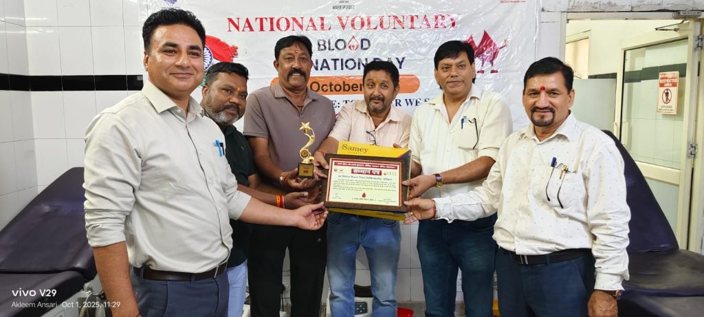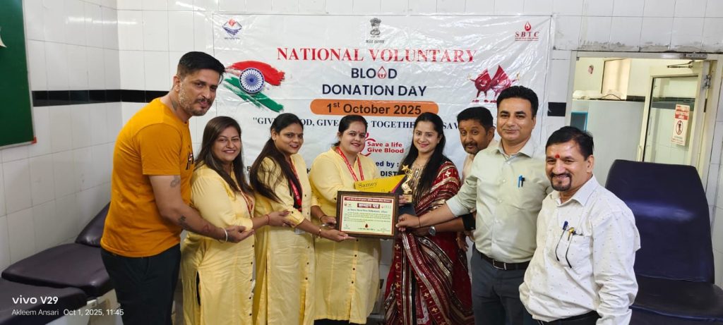 आज 01अक्टूबर 2025 को राष्ट्रीय रक्तदाता दिवस पर रक्तकेंद्र जिला चिकित्सालय हरिद्वार में रक्तदान करने वाली संस्थाओं, महिला शसक्तीकरण के रक्त वीरांगनाओं, रक्तवीरों को प्रमुख अधीक्षक जिला चिकित्सालयडा आर, बी सिंह,रक्तकेंद्र प्रभारी, डा रविन्द्र चौहान, एस पी चमोली जिला फार्मेसी अधिकारी के द्वारा सम्मानित किया गया सम्मानित किया गया।