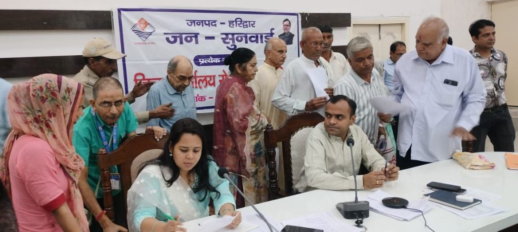 जनसुनवाई कार्यक्रम में राजस्व,भूमि विवाद, अतिक्रमण,जल भराव, पेयजल,विद्युत आदि से संबंधित समस्या दर्ज कराई गई। जनसुनवाई कार्यक्रम में प्राथी गुलशाना निवासी ग्राम बंदरजुड़ तहसील भगवानपुर ने खसरा न 335 - खाता नं 135 की भूमि पर मकान का निर्माण कर रहा है जिसको वन विभाग द्वारा रोका जा रहा है जिसको लेकर प्रार्थना पत्र दिया।रणधीर सिंह निवासी नाथनगर ज्वालापुर ने भूमि खाता संख्या 69 खसरा नं 211 (ग) में बदोबस्त अधिकारी का आदेश हुआ था, जिसको खतौनी में चढ़ाने के लिए प्रार्थना पत्र दिया। इनामु अली पुत्र अली हसन ग्राम हजारा ग्रंट ने खेत खसरा नं 859 ग्राम हजारा ग्रंट ब्लॉक बहादराबाद रुड़की की जो चक रोड के दक्षिण में स्थित रकबा कुल रकबा 6 बीघा है जिला पंचायत हरिद्वार ने रोड का निर्माण कराया था चक रोड से कोई भी पानी की निकासी के लिए नाली का निर्माण नहीं कराया गया था जिसके कारण प्राथी के भूमि में जलभराव हो गया था जिसको लेकर प्रार्थना पत्र दिया गया।पंकज सैनी निवासी कृष्णा नगर ने अपनी दुकान के सामने रोड के बीचों बीच एल टी का विद्युत पोल को स्थानांतरित कराने के लेकर प्रार्थना पत्र दिया। भूपेंद्र सैनी रावली महदूद ने जय श्री धर्म कांटे सिडकुल से लेकर बैरियर नं 6 तक तक मुख्य मार्ग पर हो रहे अवैध अतिक्रमण हटाने के संबंध में शिकायत की गई।रेशमा पत्नी महबूब निवासी डालूवाला कलां ने अपने दोनों बच्चों का नाम किसी दूसरे के राशन कार्ड में दर्ज हो गया है,जिसको सही कराने को लेकर प्रथम पत्र दिया। बोहाती पत्नी स्व नेत्रपाल मौजा ग्राम कुमाराडा परगना मंगलौर तहसील रुड़की ने अपनी भूमि पैमाईश करने को लेकर प्रार्थना पत्र दिया।सुशील कुमार ग्राम बनजारे वाला में ग्राम समाज की जलमग्न भूमि जिसका खसरा नं 578 है उसमें कुछ लोगो द्वारा किए जा रहे अवैध कब्जे हटवाने को लेकर शिकायत की गई। ;जिलाधिकारी ने उपस्थित अधिकारियों को निर्देशित करते हुए कहा कि जनसुनवाई में जनता द्वारा जो भी समस्याएं दर्ज कराई जा रही है उन समस्याओं को त्वरित एवं समयबद्धता के साथ निराकरण करना सुनिश्चित करे। इसमें किसी भी प्रकार की कोई लापरवाही एवं स्थिलता नहीं होनी चाहिए, स्थिलता बरती जाने पर संबंधित अधिकारियों के विरुद्ध आवश्यक करवाई सुनिश्चित की जाए