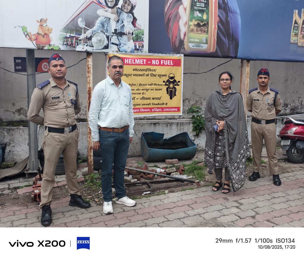 सड़क दुर्घटनाओं से होने वाली मृत्यु दर को कम करने के उद्देश्य से परिवहन विभाग हरिद्वार द्वारा“नो हेलमेट, नो पेट्रोल / No Helmet, No Fuel” अभियान प्रारंभ किया ।