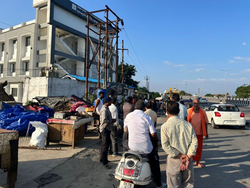 आज नगर निगम टीम द्वारा भूपतवाला क्षेत्र में हाइवे के समीप अतिक्रमण कर बनाई गई दुकानों और ढाबों को हटाया गया।नन्दन कुमार (आई०ए०एस०) नगर आयुक्त , नगर निगम हरिद्वार के निर्देश के क्रम में अतिक्रमण हटाओ अभियान के अन्तर्गत पावन धाम आश्रम के सामने स्थित सर्वानन्द घाट क्षेत्र में सामुदायिक स्वास्थ्य केन्द्र भूपतवाला के पास नैशनल हाईवे के समीप स्थित अतिक्रमण को नगर निगम हरिद्वार, पुलिस विभाग एवं उत्तराखण्ड सिंचाई विभाग की संयुक्त टीम द्वारा अस्थायी अतिक्रमण को हटाया गया है। अतिक्रमण टीम में नगर निगम हरिद्वार की ओर से श्याम सुन्दर प्रसाद (टीम प्रभारी) नाथीराम, गौरव सागर, सुभाष, नवीन अरोडा, मुकेश आचार्य, सोनू, मोहित आदि कर्मचारी उपस्थित रहे। पुलिस विभाग की ओर से सतेन्द्र भण्डारी (चौकी इंचार्ज), चरण सिंह (चौकी इंचार्ज), संदीप वर्मा (एस०आई०), दीपक ध्यानी, नन्द किशोर (एस०एस०आई०) शिवानन्द घिल्डियाल, सुमित कुमार, सुश्री शोभा, सुश्री अनिता थापा आदि उपस्थित रहे तथा उत्तराखण्ड सिंचाई विभाग की ओर से पारस राम सागर (जिलेदार), वीरेन्द्र कुमार (सींच पर्यवेक्षक), ओमवीर सिंह (सींच पर्यवेक्षक) आदि उपस्थित रहे।