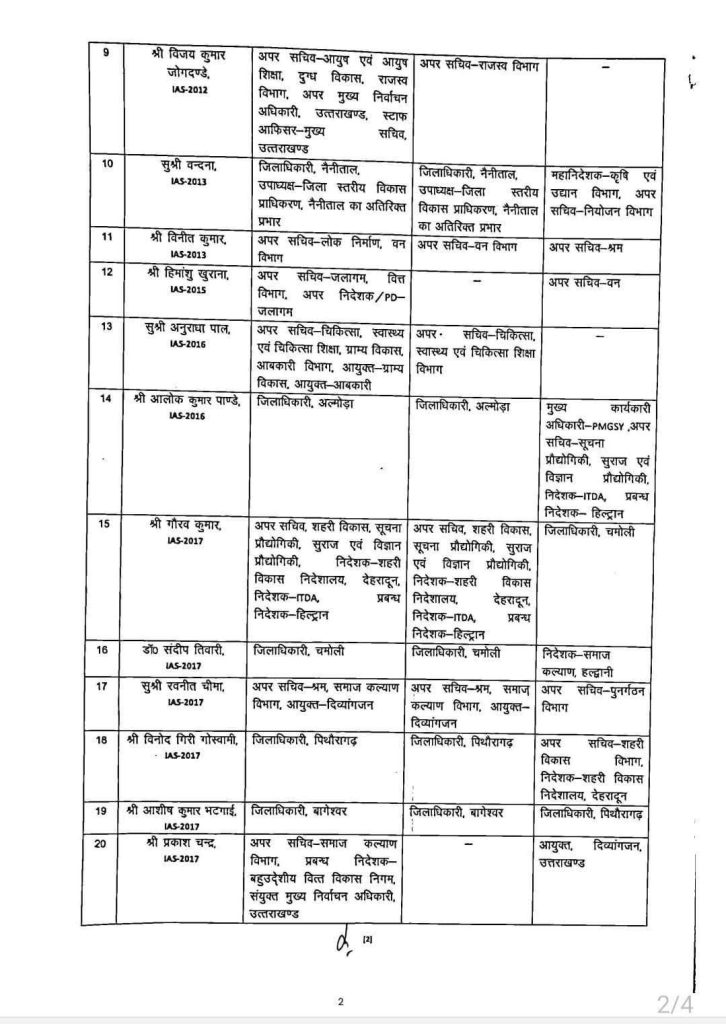 उत्तराखंड में बड़े स्तर पर आईएएस व पीसीएस अफ़सरों के हुए तबादले,लिस्ट हुई जारी.44 अधिकारी हुए इधर से उधर।