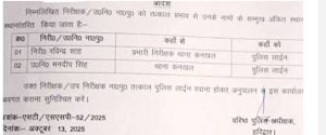 एसएसपी प्रमेंद्र सिंह डोबाल ने कोर्ट से जुड़े कार्य में लापरपाही पर थाना कनखल के प्रभारी रहे रविन्द्र शाह और उप निरीक्षक मनदीप सिंह को लाइन हाजिर कर दिया है।