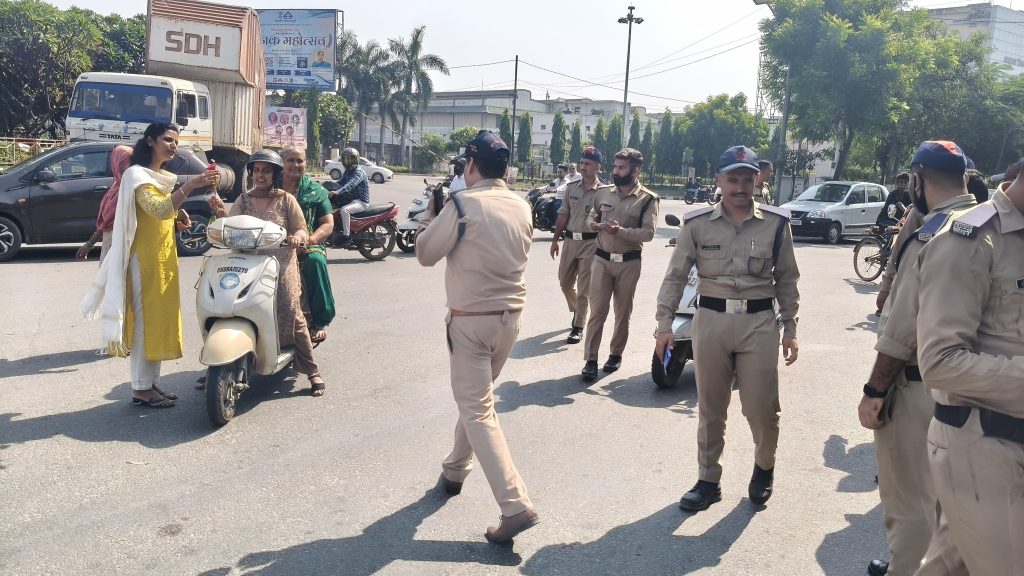 उन्होंने यह भी अवगत कराया कि हेलमेट लगाने वाले लोगों को परिवहन टीम द्वारा फूल तथा चॉकलेट देकर प्रोत्साहित किया।