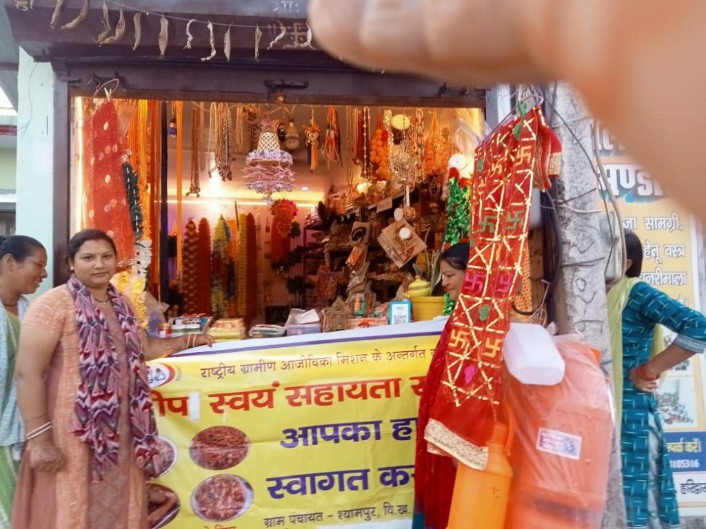 हरिद्वार के मुख्य विकास अधिकारी डॉ.ललित नारायण मिश्रा के निर्देशों के क्रम में जनपद के समस्त विकासखण्डों में गठित स्वयं सहायता समूहों की महिलाओं द्वारा अपने-अपने क्षेत्रों में उत्पाद प्रदर्शन एवं विक्रय हेतु विशेष पहल की गई है। इस क्रम में प्रत्येक विकासखण्ड एवं नगरीय क्षेत्र में उपयुक्त स्थानों पर स्वयं सहायता समूहों द्वारा निर्मित विभिन्न स्वदेशी उत्पादों के स्टॉल स्थापित किए गए हैं। इन स्टॉलों में दीपावली एवं त्योहारी सीजन को ध्यान में रखते हुए दीये, मोमबत्तियाँ, सजावटी सामग्री, पर्यावरण अनुकूल पूजा सामग्री, गृह उपयोगी वस्तुएँ, खाद्य सामग्री, हस्तशिल्प उत्पाद, मसाले, पापड़, अचार तथा अन्य स्थानीय उत्पाद प्रदर्शित एवं विक्रय किए जा रहे हैं।