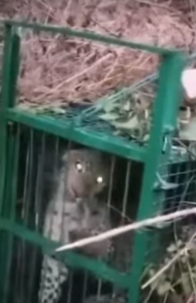 जनपद पौड़ी के घंडियाल गांव में पिंजरें में कैद हुआ गुलदार। देखें वीडियो में उसकी दहाड़।