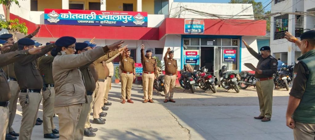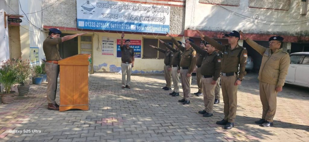 संविधान दिवस के अवसर पर रोशनाबाद पुलिस लाइन स्थित क्वार्टर गार्ड में शपथ कार्यक्रम आयोजित किया गया। इस अवसर पर एसएसपी प्रमेंद्र सिंह डोबाल द्वारा लोकतंत्र एवं आमजन के लिए भारतीय संविधान के महत्व को रेखांकित करते हुए मौजूद सभी जवानों एवं पीएमएस के छात्र-छात्राओं को संविधान के प्रति निष्ठावान रहने की शपथ दिलाई गई। पुलिस कार्यालय रोशनाबाद में आयोजित कार्यक्रम में एसपी क्राइम व ट्रैफिक जितेंद्र मेहरा द्वारा जवानों को शपथ दिलाई गई। संविधान दिवस के अवसर पर जनपद के सभी थाना, कोतवाली, कार्यालयों व शाखाओं में भी पुलिसकर्मियों ने संविधान की शपथ ली।