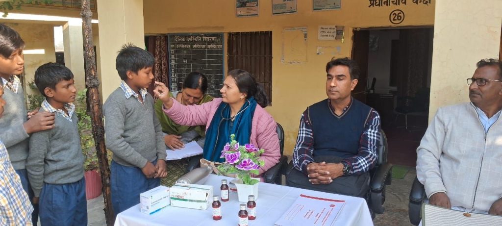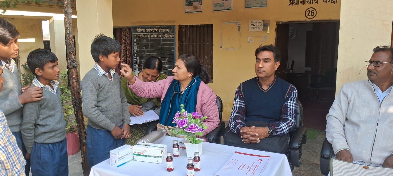 विद्यालय में आयोजित किया गया स्वास्थ्य परीक्षण एवं जांच शिविर।