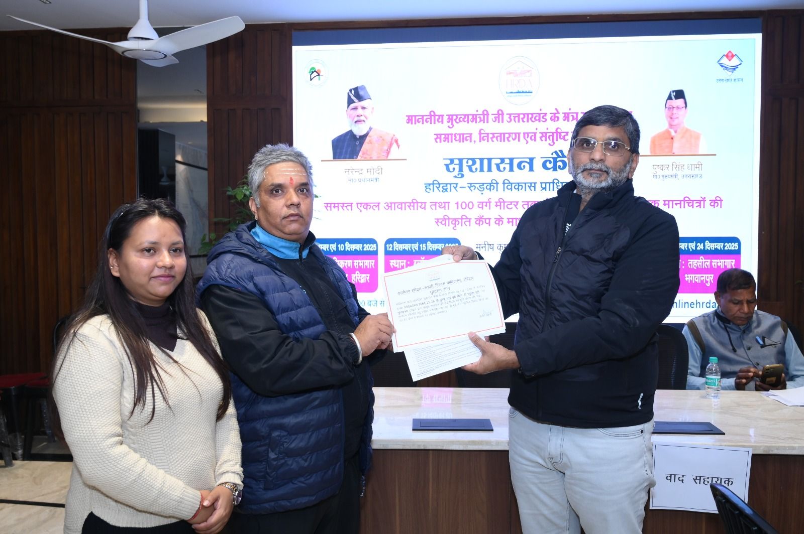 मुख्यमंत्री पुष्कर सिंह धामी के सरलीकरण, समाधान, निस्तारण एवं संतुष्टि के मंत्र को आगे बढ़ाते हुए हरिद्वार–रुड़की विकास प्राधिकरण (HRDA) द्वारा आज सुशासन कैंप का सफल आयोजन प्राधिकरण मुख्यालय स्थित सभागार में किया गया। इससे पूर्व भी दो सुशासन कैंप आयोजित किए जा चुके हैं।