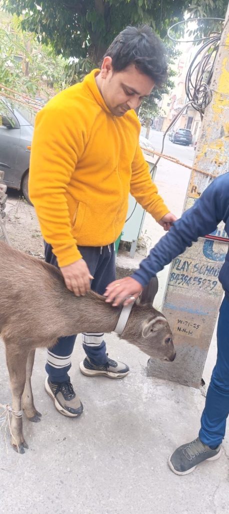 सूचना मिलते ही पुलिस टीम ने त्वरित कार्रवाई करते हुए मौके पर पहुंचकर स्थिति को नियंत्रित किया और सांभर के बच्चे को सुरक्षित रूप से संभाला और वन विभाग को सूचना दी। पुलिस की सूचना पर आयी वन विभाग की टीम सांभर के बच्चे को रेस्क्यू कर साथ ले गयी।