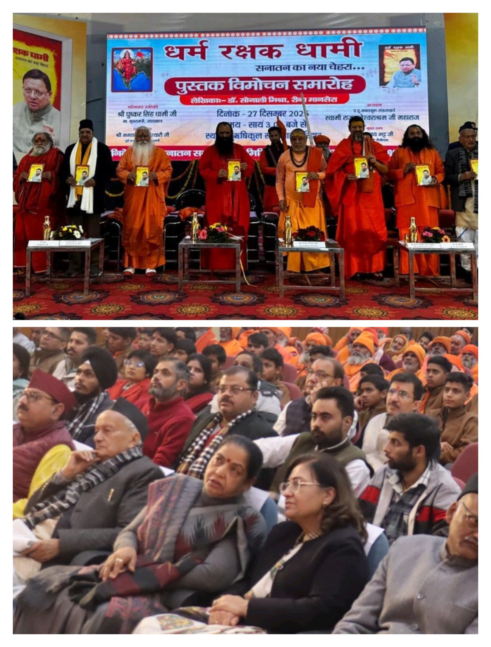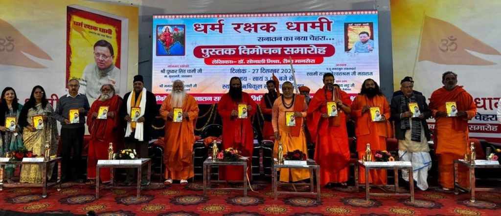 राष्ट्र संचालन के लिए धर्म नीति का होना आवश्यक है, धर्म की रक्षा होगी तभी राष्ट्र सुरक्षित रहेगा। राष्ट्र-राज्य की सुरक्षा को चुनौती दे रही जिहादी मानसिकता को समाप्त करने में जिस तरह मुख्यमंत्री पुष्कर सिंह धामी ने ताबड़ तोड़ कार्यवाही की है, उसे डॉ. सोनाली मिश्रा व रीना मानसेरा ने लिपिबद्ध कर सहरानीय कार्य किया है। यह उद्गगार सनातन सद्भावना समिति द्वारा आयोजित कार्यक्रम में जगतगुरु शंकराचार्य स्वामी राजराजेश्वराश्रम महाराज ने धर्म रक्षक धामी पुस्तक के विमोचन अवसर पर ऋषिकुल सभागार में दिए।
