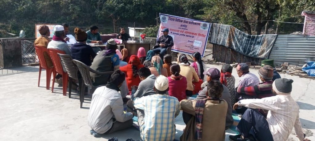 जागरूकता शिविर का आरम्भ नालसा थीम गीत ” एक मुठ्ठी आसमान “चलाकर किया गया। अल्मोड़ा की जिला विधिक सेवा प्राधिकरण की सचिव शचि शर्मा ने जन समुदाय को विधिक सेवा प्राधिकरण द्वारा चलाई जा रही विभिन्न योजनाओं के बारे में विस्तृत रूप से बताया।