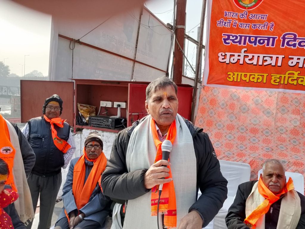 समारोह का संचालन कर रहे धर्म यात्रा महासंघ के केंद्रीय मंत्री डॉ. रजनीकांत शुक्ल ने कहा धर्मयात्रा महासंघ की स्थापना विहिप के तत्कालीन अन्तराष्ट्रीय अध्यक्ष अशोक सिंघल ने 1995 में हरिद्वार में ही की थी। मकर संक्रांति पर्व पर अस्तित्व में आए इस महासंघ की आज भारत के सभी प्रांतों में संगठन व शाखाएं हैं। भारत की आत्मा तीर्थों में वास करती है। तीर्थों का विकास भारत का विकास है, धर्मयात्रा महासंघ का ध्येय वाक्य है।