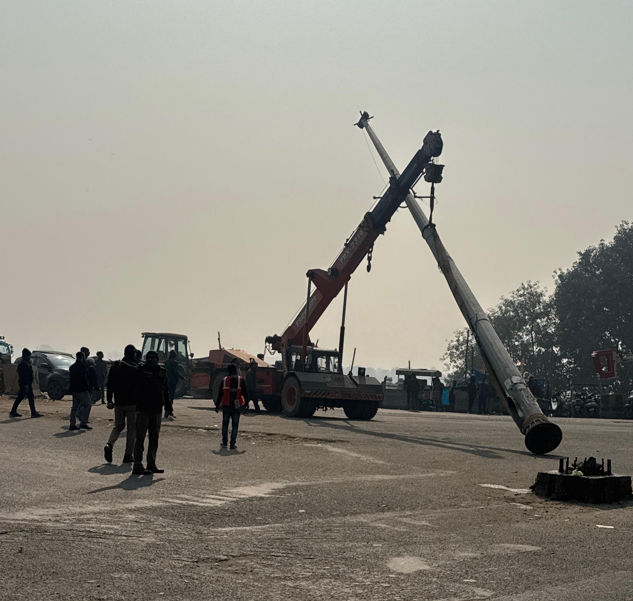 सुरक्षित याता यात के दृष्टिगत जिलाधिकारी मयूर दीक्षित के निर्देशन में एन एच ए आई द्वारा हटाया गया हाईमाक्स विधुत पोल