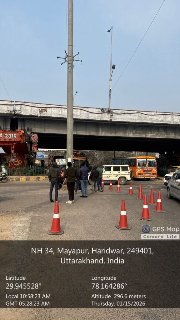 अतुल शर्मा प्रोजेक्ट मैनेजर एन एच ए आई ने अवगत कराया है कि राष्ट्रीय राजमार्ग पर यातायात को बाधित कर रहे पोल,होडिंग,यूनिपोल को जिलाधिकारी के निर्देशों के अनुपालन में जिला सड़क सुरक्षा समिति हरिद्वार, द्वारा सभी प्रकार के मार्गों पर यातायात को अवरुद्ध कर रहे, किसी भी प्रकार के साइन बोर्ड, होर्डिंग, यूनिपोल या अन्य किसी प्रकार के अवरोध को हटाए जाने के क्रम में सहायक संभागीय परिवहन अधिकारी निखिल शर्मा एवं श्रीमती नेहा झा के द्वारा चिन्हित हाई माक्स लाइट पोल, जो की चंडी चौक चौराहे पर राष्ट्रीय राजमार्ग संख्या 34 पर हरिद्वार से नजीबाबाद जाने वाले यातायात को प्रभावित कर रहा था। जिससे दुर्घटना होने की संभावना हर समय बनी रहती थी। उस स्थान पर स्थापित हाईमाक्स विधुत पोल को हटाने हेतु निर्देशित किया गया। जिसका तत्काल संज्ञान लेते हुए उनके नेतृत्व में एवं राष्ट्रीय राजमार्ग प्राधिकरण रुड़की के साइट इंजीनियर नवीन सिंह रावत, यातायात पुलिस, नगर निगम एवं अन्य के सहयोग से आज उक्त हाई मास्क लाइट के पॉल को चंडी चौक से हटा दिया गया है। साथ ही संबंधित टीम को निर्देशित कर उस पोल की फाउंडेशन को भी हटाने के साथ-साथ सड़क को स्मूथ करने के निर्देश दिए गए हैं जिससे कि चंडी चौक पर अब बाधा रहित यातायात का संचालन निरंतर होता रहेगा एवं दुर्घटनाओं की आशंका भी शून्य होगी।