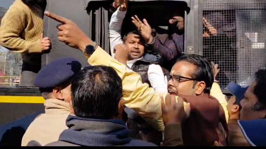 अंकिता भंडारी हत्याकांड की सुप्रीम कोर्ट के जज की निगरानी में निष्पक्ष सीबीआई जांच की मांग और दोषी भाजपा के वीआईपी नेताओं के खिलाफ कड़ी कार्यवाही, प्रदेश में बिगड़ती कानून व्यवस्था, उत्तर प्रदेश के प्रयागराज में मौनी अमावस्या के स्नान पर्व पर शंकराचार्य स्वामी अविमुक्तेश्वरानंद जी महाराज और उनके शिष्यों के साथ हुई अभद्रता, मुनि महाराज की डोली और उनके भक्तों के खिलाफ पुलिस और प्रशासन द्वारा की गई अभद्रता और मुकदमों, उधम सिंह नगर में किसान सुखवंत सिंह द्वारा की गई आत्महत्या की सीबीआई जांच और धामी सरकार के संरक्षण फल फूल रहे भ्रष्टाचार को लेकर वरिष्ठ कांग्रेस नेता मनोज सैनी व सोम त्यागी के संयोजन और यूथ कांग्रेस अध्यक्ष गौरव चौहान के नेतृत्व में युवा कांग्रेस पदाधिकारियों और कार्यकर्ताओं ने ऋषिकुल तिराहे पर अमित शाह मुर्दाबाद, अमित शाह गो बैक, हिन्दू विरोधी ये सरकार नहीं चलेगी आदि नारों के साथ जोरदार प्रदर्शन किया और गृह मंत्री अमित शाह को काले झंडे दिखाने के लिए हाइवे की तरफ बढ़े तो भारी पुलिस बल ने उन्हें रस्ते में ही रोकने का प्रयास किया, जिसमें पुलिस और कांग्रेस कार्यकर्ताओं के साथ धक्का मुक्की हुई और पुलिस ने बीच रास्ते में सभी को गिरफ्तार कर पुलिस लाइन भेज दिया।