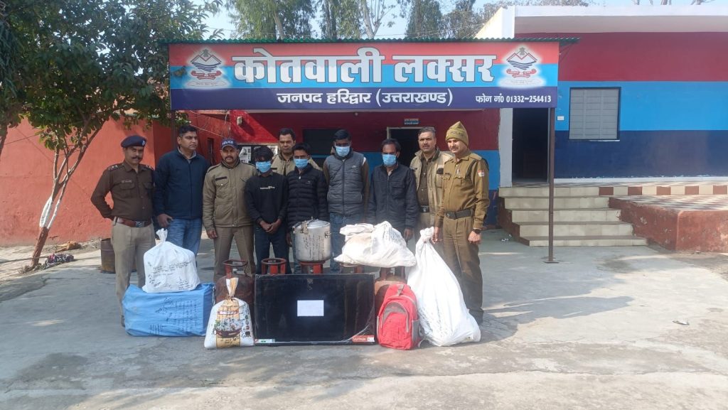 कोतवाली लक्सर पुलिस ने शातिर चोर गिरोह के चार सदस्यों को गिरफ्तार किया है। आरोपी घने कोहरे व एकान्त का फायदा उठाकर स्कूलों व आगनबाडी केन्द्रो को निशाना बनाते थे। आरोपियों ने लकसर कोतवाली क्षेत्र में भूरना गांव के प्रा.वि. भूरनी गांव के आंगनबाडी केन्द्र, भूरनी गांव के प्रा.वि. और किसान इण्टर कालेज भूरनी में चोरी की घटनाओं का अंजाम दिया था। पुलिस ने आरोपियों के कब्जे से लगभग 3.50 लाख रूपए कीमत का माल बरामद किया है। क्षेत्र में सरकारी संस्थानों में लगातार हो रही चोरी की घटनाओ का संज्ञान लेते हुये एसएसपी प्रमेंद्र सिंह डोबाल ने लकसर कोतवाली प्रभारी को टीम गठित कर खुलासा करने के निर्देश दिए थे।