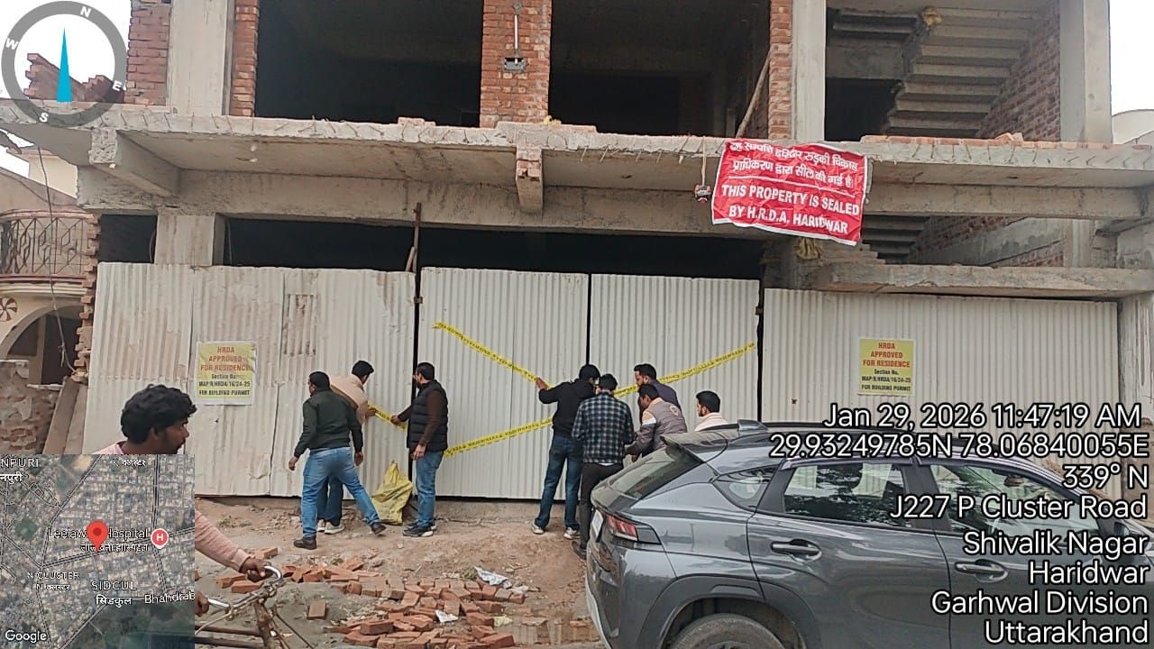 शिवालिक नगर हरिद्वार फेज 2 के प्लॉट नंबर J 224 में आशु गुप्ता एवं रिजू गुप्ता द्वारा लगभग 30*60 फीट में किए जा रहे अनाधिकृत निर्माण, तथा श्यामपुर कांगड़ी हरिद्वार में पुराना हरिद्वार रोड पर योग क्रिया आश्रम के बगल में श्रीमती साध्वी अर्चना द्वारा लगभग 25*50 फीट में किए जा रहे अनाधिकृत निर्माण को हरिद्वार रुड़की विकास प्राधिकरण क़ी टीम द्वारा सील किया गया।