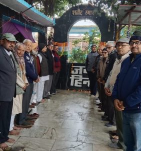 कार्यक्रम के समापन पर इस बीच स्वतंत्रता सेनानी परिवारों की दिवंगत हुई स्वतंत्रता संग्राम सेनानी श्री बलवंत सिंह के पुत्र सुभाष घई, स्वतंत्रता संग्राम सेनानी श्री दिनेश शर्मा की पुत्री रश्मि शर्मा तथा स्वतंत्रता संग्राम सेनानी श्री रघुनाथ सैनी की पुत्रवधु लीलावती जी की महान आत्माओं की निर्विघ्न विकास यात्रा के लिए 2 मिनट मौन रखकर सामूहिक प्रार्थना की गई।