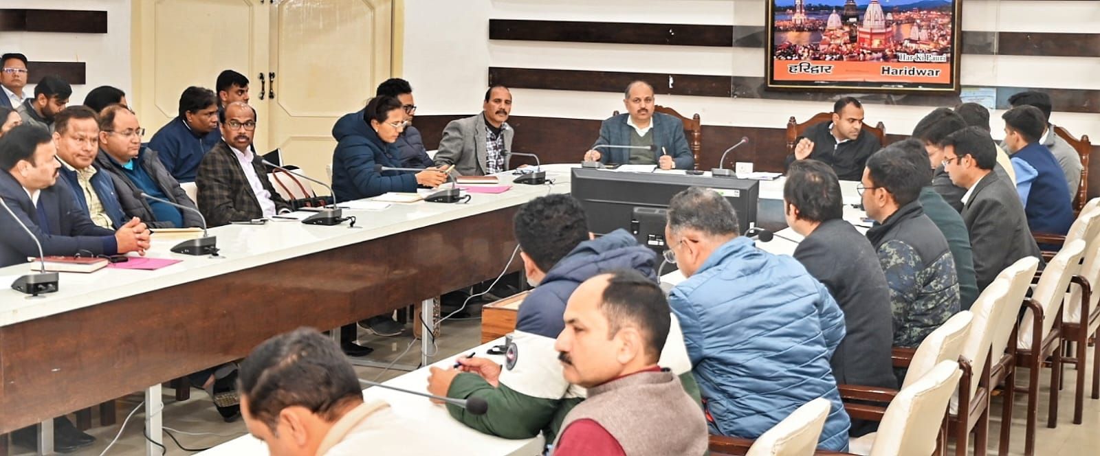 तीर्थ नगरी हरिद्वार को साफ स्वच्छ जनपद बनाने के लिए दिनांक 07 फरवरी को चलाए जा रहे मेगा सफाई अभियान जिसमें एक दिन एक घंटा एक साथ सफाई अभियान की सफलता के लिए जिलाधिकारी मयूर दीक्षित ने जिला कार्यालय सभागार में जिलास्तरीय अधिकारियों के साथ बैठक की।