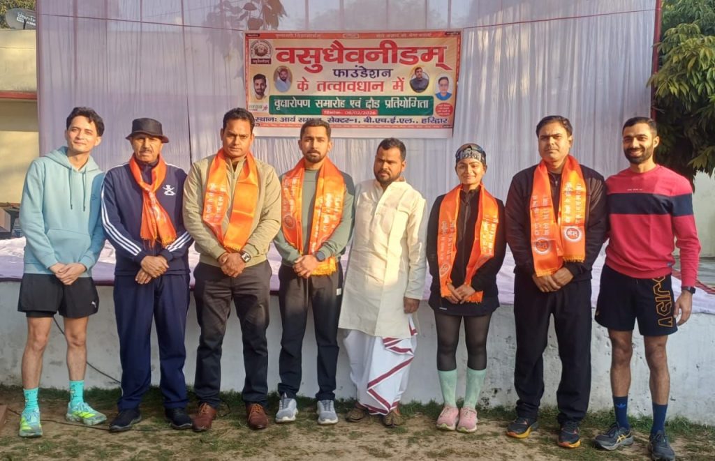 वसुधैवनीडम् फाउंडेशन एवं रन क्लब के संयुक्त तत्वावधान में वृक्षारोपण समारोह एवं पांच किमी की दौड़ प्रतियोगिता का आयोजन किया गया। आर्य समाज मंदिर भेल सेक्टर-1 से शुरू हुई दौड़ का शुभारंभ आचार्य योगेंद्र मेधावी एवं मुख्य अतिथी वसुधैवनीडम् के उपाध्यक्ष राकेश कुमार ने हरी झंडी दिखाकर किया। दौड़ प्रतियोगिता में बच्चों के साथ बड़ी संख्या में युवकों व युवतियों ने भी भाग लिया। इस दौरान बंजर भूमि पर फलदार व औषधीय पौधों का रोपण भी किया गया। मुख्य अतिथि राकेश कुमार ने विचारों की शुद्धता को उत्तम कर्म का आधार बताया। देहरादून से आईं भैरवी ने कार्यक्रम की सामाजिक व सांस्कृतिक उपयोगिता पर प्रकाश डाला। दौड़ प्रतियोगिता के प्रतिभागियों को प्रमाण पत्र प्रदान किए गए। इस अवसर पर ऋषिमन चंदवानी, विशाल सैनी, सूर्या बिष्ट, शेर सिंह सैनी, किशन कुमार चंदवानी, अर्चित चंदवानी, अर्जुन भारद्वाज, सचिन तिवारी, मदन सिंह सहित बड़ी संख्या में लोग मौजूद रहे।