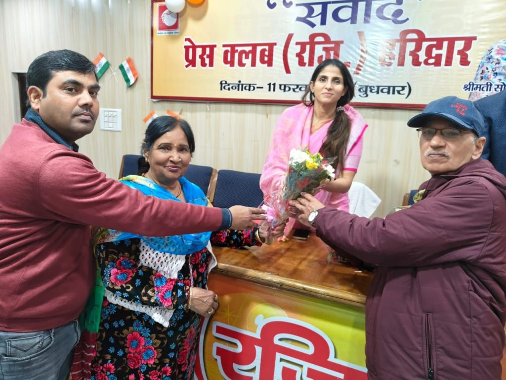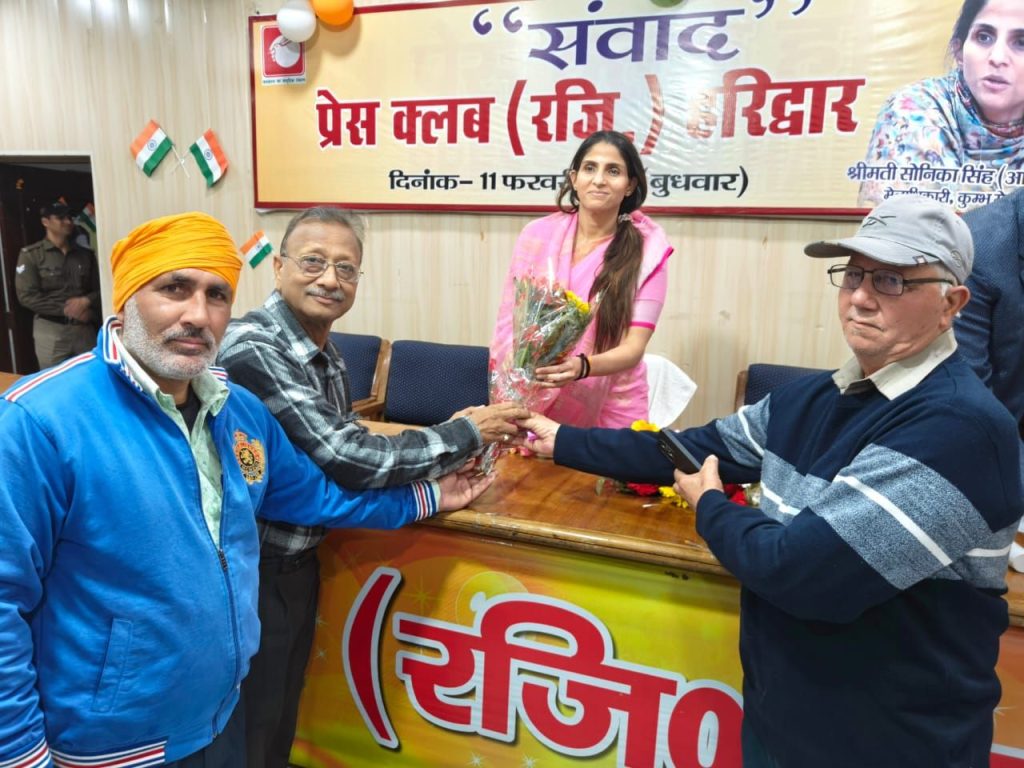 प्रैस क्लब हरिद्वार में संवाद कार्यक्रम का आयोजन किया गया। मुख्य अतिथी कुंभ मेला अधिकारी सोनिका सिंह ने दीप प्रज्वलित कर कार्यक्रम का शुभारंभ किया। प्रैस क्लब अध्यक्ष धर्मेंद्र चौधरी व महामंत्री दीपक मिश्रा ने संवाद कार्यक्रम में पधारने पर कुंभ मेला अधिकारी सोनिका सिंह का आभार जताते हुए कहा कि सोनिका सिंह कुशल प्रशासक हैं। प्रसिद्ध किंग्स कालेज लंदन से कॉमनवैल्थ गुरूकुल फेलोशिप का सम्मान मिला है। वर्ष 2019 में राष्ट्रीय ई गर्वनेंस पुरूस्कार, 2021 में स्कॉच अवार्ड एवं 2022 में मुख्यमंत्री पुष्कर सिंह धामी से भी सम्मान मिला है। उनके कुशल नेतृत्व में कुंभ मेला भव्य रूप से संपन्न होगा।