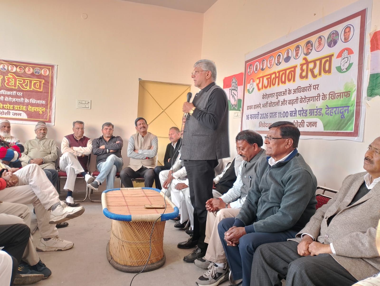 प्रदेश कांग्रेस कमेटी देहरादून के आह्वान पर 16 फरवरी 2026 को राजभवन घेराव को लेकर आज ज्वालापुर गुघालरोड पांडे वाला में पूर्व ब्लॉक अध्यक्ष यशवंत सैनी के निवास पर नगर ज्वालापुर कांग्रेस की एक बैठक का आयोजन किया गया। बैठक में बोलते हुए पूर्व राज्य मंत्री डॉ संजय पालीवाल ने कहा कि यह रैली उत्तराखंड की निकम्मी भाजपा सरकार के खिलाफ प्रदेश कांग्रेस द्वारा आयोजित की गई है।