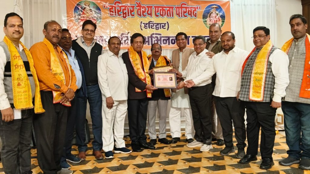 हरिद्वार वैश्य एकता परिषद के संयोजन में वैश्य समाज के विभिन्न संगठनों के पदाधिकारियों एवं समाज के गणमान्य व्यक्तियों की बैठक का आयोजन किया गया। चंद्राचार्य चौक के समीप एक होटल में आयोजित की गयी बैठक में समाज की एकता पर जोर दिया गया। बैठक के बाद होली मिलन कार्यक्रम का भी आयोजन किया गया। जिसमें सभी ने एक दूसरे के संग फूलों से होली खोली और शुभकामनाएं दी। बैठक को संबोधित करते हुए हरिद्वार वैश्य एकता परिषद के संयोजक पराग गुप्ता एवं अरविंद अग्रवाल ने बताया परिषद के गठन का उद्देश्य जनपद के समस्त वैश्य समाज को एकजुट कर एक मंच पर लाना है। उन्होंने कहा कि समाज की विभिन्न संस्थाओं के प्रतिनिधियों ने समाज को एकजुट करने के वैश्य एकता परिषद के प्रयासों से सहमति व्यक्त की है। जिससे वैश्य समाज की आपसी एकता समय-समय पर प्रदर्शित हो सकेगी। बैठक के दौरान पराग गुप्ता एवं अरविंद अग्रवाल ने संस्था के संरक्षक मंडल एवं निदेशक मंडल को प्रमाण पत्र देकर सम्मानित किया।