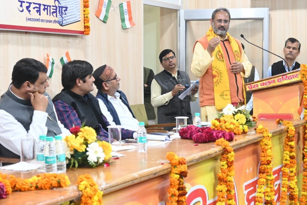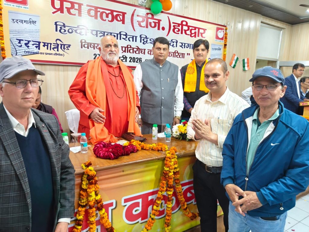 हिंदी पत्रकारिता के दौ सौ वर्ष पूरे होने के उपलक्ष्य में प्रैस क्लब में आयोजित किया जा रहे हिंदी पत्रकारिता दिशताब्दी समारोह के तहत शुक्रवार को प्रैस क्लब सभागार में व्याख्यान माला का आयोजन किया गया। कार्यक्रम का शुभारंभ मुख्य अतिथी देव संस्कृति विवि के प्रतिकुलपति डा.चिन्मय पंडया, मुख्य वक्ता नेशनल यूनियन ऑफ जर्नलिस्ट इंडिया के राष्ट्रीय महासचिव प्रदीप कुमार तिवारी, निरंजनी अखाड़े के सचिव श्रीमहंत रामरतन गिरी, प्रेस क्लब अध्यक्ष धर्मेंद्र चौधरी एवं महामंत्री दीपक मिश्रा ने दीप प्रज्वलित कर किया। वरिष्ठ पत्रकार कौशल सिखोला, रजनीकांत शुक्ला, संजय आर्य, संदीप रावत ने स्मृति चिन्ह, रूद्राक्ष की माला एवं गंगाजली भेंटकर अतिथीयों का स्वागत किया।
