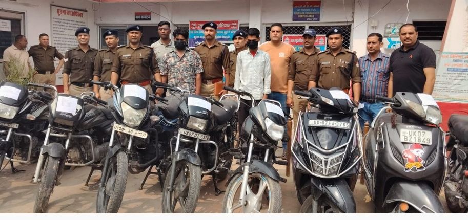 ज्वालापुर पुलिस का बड़ा एक्शन, अंतरराज्यीय वाहन चोरी गैंग का पर्दाफाश, 10 चोरी के दोपहिया वाहन बरामद।