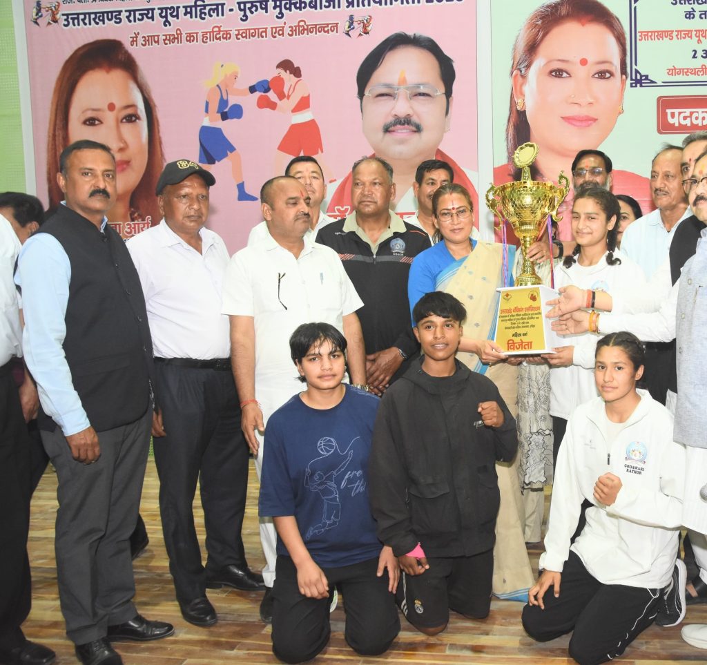 उत्तराखंड यूथ महिला एवं पुरुष मुक्केबाजी प्रतियोगिता 2026 में बालिका वर्ग में पिथौरागढ़ की टीम ओवरऑल चैंपियन बनी है। रविवार को योगस्थली खेल परिसर के मल्टीपरपज हॉल में प्रतियोगिता का भव्य समापन किया गया। इस अवसर पर रेखा आर्या ने विजेता खिलाड़ियों और टीमों को ट्रॉफी व मेडल देकर सम्मानित किया।