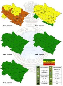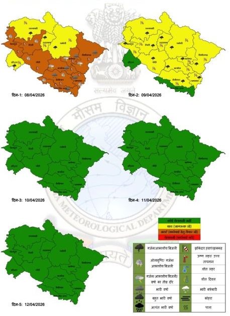 मौसम वैज्ञानिक डॉ. चंद्र सिंह तोमर के अनुसार उत्तरकाशी, चमोली, रुद्रप्रयाग और पिथौरागढ़ में बारिश के साथ 3300 मीटर से ऊपर बर्फबारी की संभावना है। विभाग ने हरिद्वार में अगले 24 घंटे के लिए येलो अलर्ट जारी किया है जबकि अधिकांश जनपदों में ओरेंज अलर्ट जारी किया गया है। 8-9 अप्रैल को पर्वतीय क्षेत्रों में ओलावृष्टि, तेज हवाएं और बिजली गिरने का खतरा रहेगा। तापमान में 3 से 5 डिग्री की गिरावट से गर्मी से राहत मिलेगी। मौसम विभाग के अनुसार पश्चिमी विक्षोभ का असर 11 अप्रैल तक रहेगा, इसके बाद मौसम धीरे-धीरे साफ होगा।
