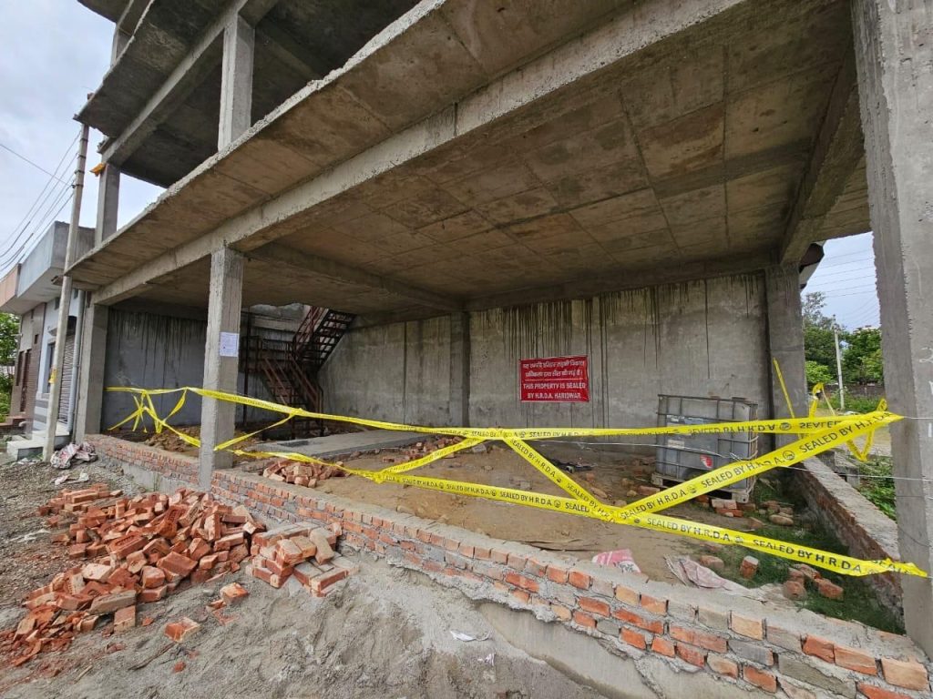 नूरपुर पंजनहेड़ी हरिद्वार में लक्ष्मी मेडिकल स्टोर के सामने भगवती विहार कॉलोनी में दाई तरफ पहली रोड पर अजीतपुर लक्सर रोड पर द्वारा लगभग 25‘ * 15‘ के क्षेत्रफल में किये जा रहे अनाधिकृत आवासीय निर्माण को प्राधिकरण की टीम द्वारा पुलिस बल की उपस्थिति में सील किया गया।