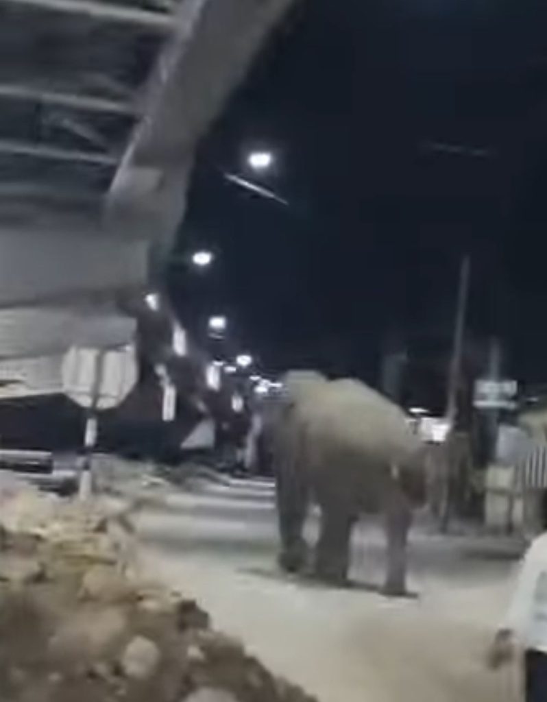 बीती रात उत्तरी हरिद्वार के दुधाधारी चौक पर देर रात उस वक्त अफरा-तफरी मच गई, जब जंगल से निकलकर एक विशालकाय जंगली हाथी अचानक सड़क पर आ धमका। इस चौक पर आमतौर पर यात्रियों की भारी आवाजाही रहती है, ऐसे में बड़ा हादसा हो सकता था, लेकिन रात होने के कारण वहां कोई लोगों की आवाजाही नहीं थी इसलिए हाथी बिना किसी को नुकसान पहुंचाए वापस लौट गया। इसका विडियो वायरल हो रहा है।