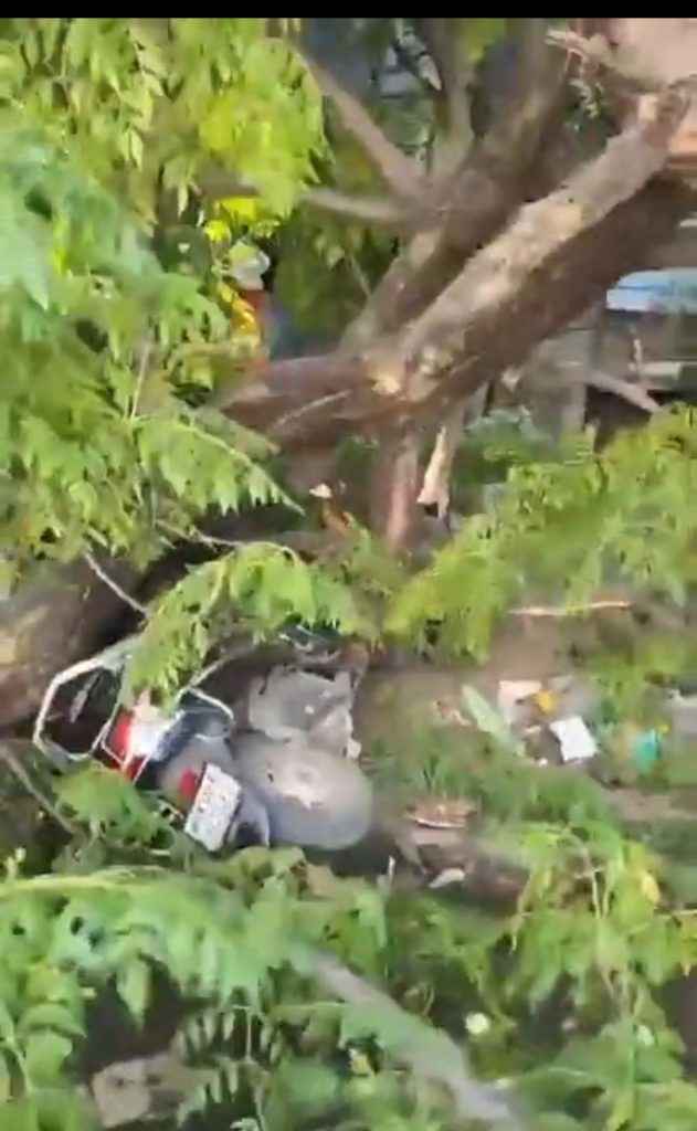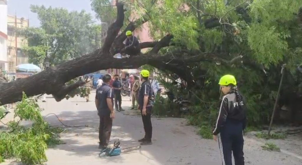 फायर ब्रिगेड और पुलिस ने सड़क पर गिरे पेड़ को हटाकर यातायात सुचारू किया।
