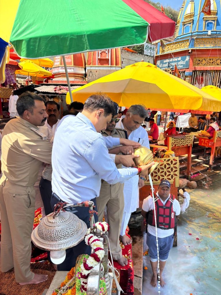 चारधाम यात्रा शुरू होने से एक दिन पूर्व आयुक्त गढ़वाल मंडल विनय शंकर पांडे,आईजी गढ़वाल राजीव स्वरूप, जिलाधिकारी मयूर दीक्षित एवं वरिष्ठ पुलिस अधीक्षक नवनीत सिंह भुल्लर ने हर की पैड़ी में मां गंगा की पूजा अर्चना कर चार धाम यात्रा को निर्विघ्न,सुरक्षित एवं कुशलता पूर्वक संपन्न कराने के लिए मां गंगा से प्रार्थना की।